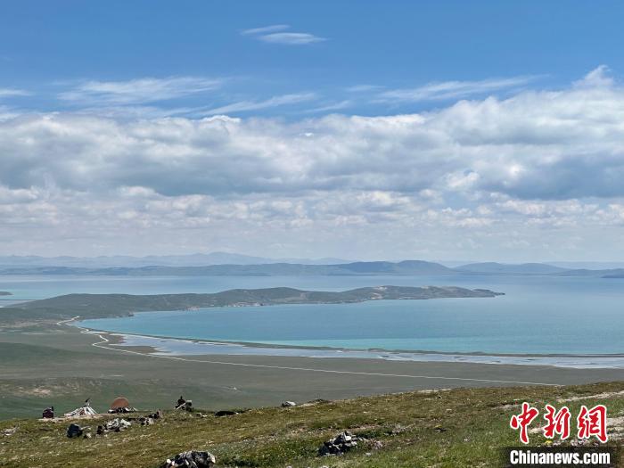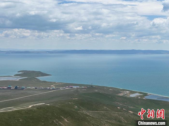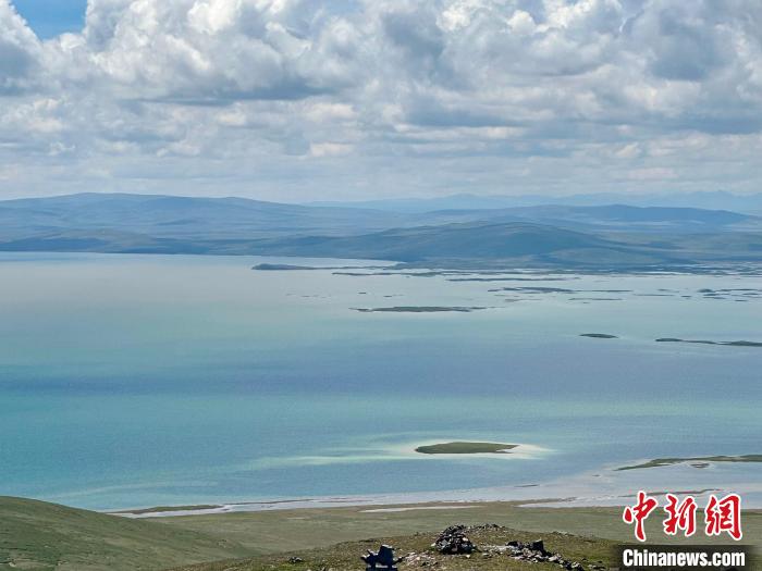 8月1日,記者拍攝到湛藍(lán)的鄂陵湖宛如藍(lán)寶石鑲嵌在群山之中,煙波浩渺、波瀾壯闊。