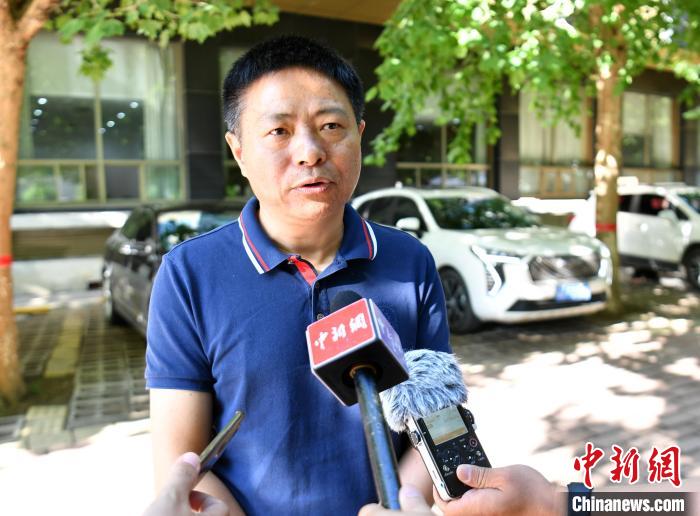 8月5日,黃平正在接受媒體采訪?!≈行律缬浾?韓冰 攝