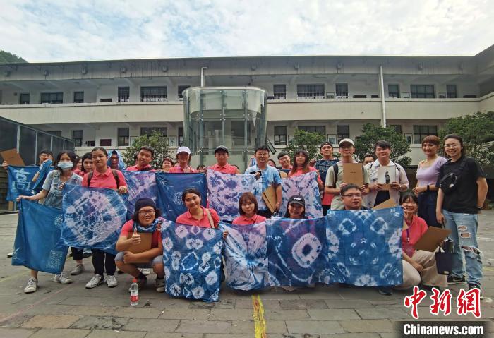 臺(tái)灣青年參加臺(tái)胞青年千人夏令營貴州分營,展示親手制作的非遺印染技藝作品。周燕玲 攝