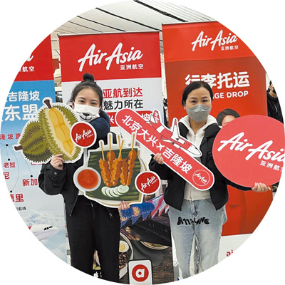 在馬來西亞吉隆坡國際機(jī)場,工作人員歡迎中國游客。