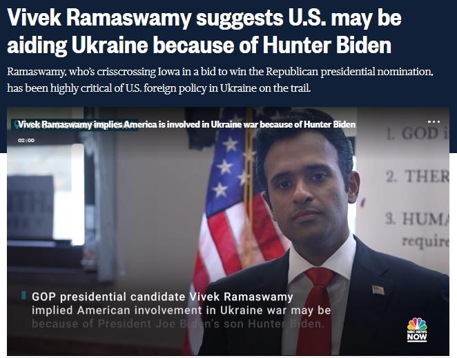 中新網(wǎng)8月8日電 據(jù)美國(guó)全國(guó)廣播公司(NBC)報(bào)道,當(dāng)?shù)貢r(shí)間6日,美國(guó)共和黨2024年總統(tǒng)競(jìng)選人維韋克·拉馬斯瓦米稱(chēng),美國(guó)參與烏克蘭危機(jī)或與拜登家族腐敗有關(guān)。