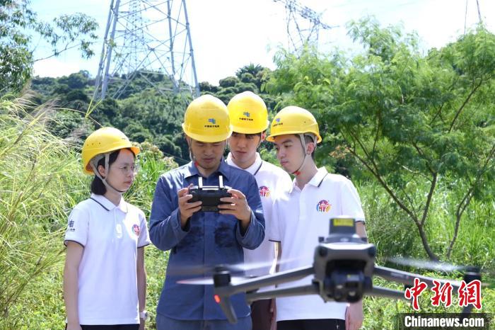 在南方電網(wǎng)公司深圳供電局實(shí)習(xí)的港澳臺(tái)大學(xué)生學(xué)習(xí)開展無(wú)人機(jī)巡視作業(yè)。(南方電網(wǎng)供圖)