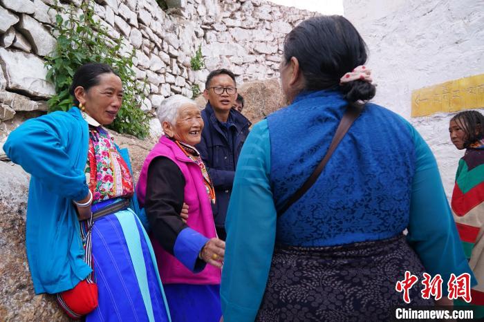 8月6日,在曲古寺,游客與主瑪央宗一家交談。劉冉陽 攝
