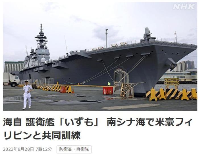 27日當天,日本海上自衛(wèi)隊還邀請美、澳、菲的海軍指揮官在“出云”號上舉行典禮。據(jù)介紹,這是“出云”號首次??狂R尼拉。