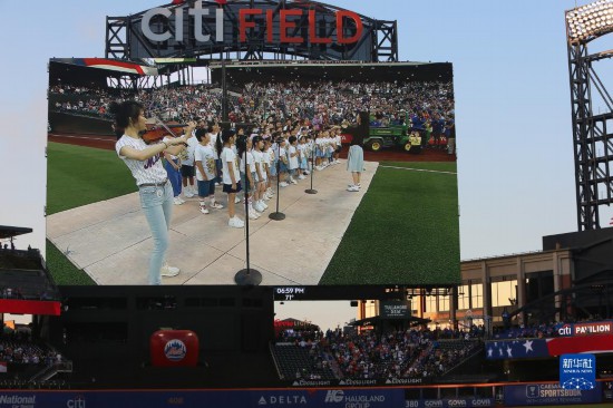 9月1日,在美國紐約大都會棒球隊(duì)主場花旗球場,兒童合唱團(tuán)在“中華之夜”暨“你好!中國”旅游推廣品牌發(fā)布活動結(jié)束后表演。