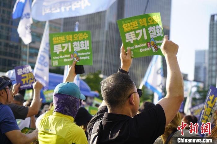 當天下午,集會在首爾中區(qū)新聞中心前舉行。中新社記者在現(xiàn)場看到,大批民眾手舉寫有“停止日本排放核污染水行為!”“反對向海洋傾倒福島核污水!”等字樣的標語,并高呼“立即停止向海洋傾倒核污染水!”“禁止進口所有日本水產(chǎn)品!”等口號,要求日本停止向海洋傾倒福島核電站核污染水,并敦促韓國政府向國際海洋法法庭起訴日本。