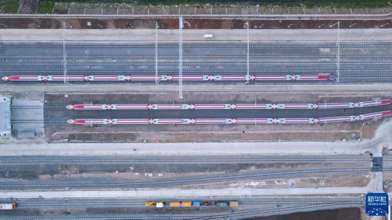 7月20日,雅萬高鐵列車??吭谟《饶嵛鱽喨f隆德卡魯爾動車所附近(無人機照片)。新華社記者 徐欽 攝