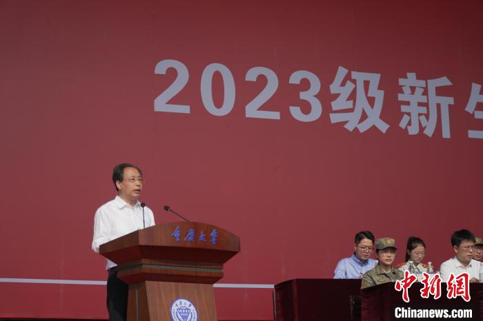 中新網(wǎng)重慶9月3日電 (記者 鐘旖)重慶大學(xué)2023級(jí)本科生開學(xué)典禮暨軍訓(xùn)動(dòng)員大會(huì)3日在校內(nèi)舉行。重慶大學(xué)校長、中國工程院院士王樹新為來自五湖四海的新生帶來“開學(xué)第一課”。