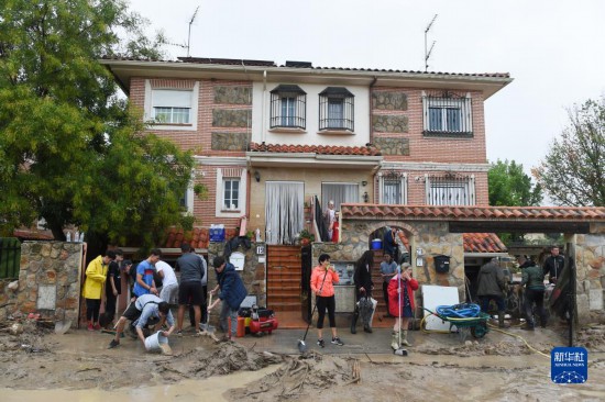 9月4日,居民在西班牙馬德里比利亞曼塔鎮(zhèn)清理淤泥。新華社發(fā)(古斯塔沃·巴連特攝)