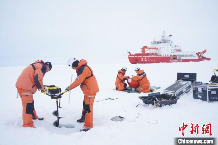 近日,中國第13次北冰洋科學(xué)考察隊在北極點附近開展海冰綜合作業(yè)。(自然資源部供圖)