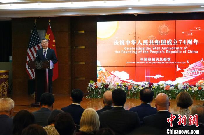 中新社紐約9月14日電 (記者 王帆)中國駐紐約總領(lǐng)館當(dāng)?shù)貢r(shí)間13日晚在紐約舉行慶祝中華人民共和國成立74周年招待會(huì),領(lǐng)區(qū)政商學(xué)媒等各界代表近400人出席。