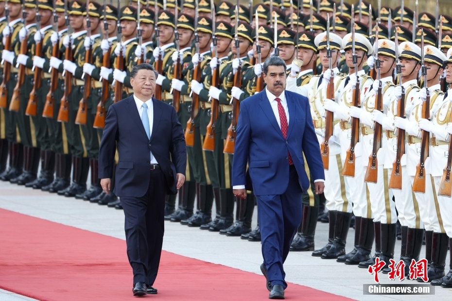 9月13日下午,中國國家主席習(xí)近平在北京人民大會堂同來華進(jìn)行國事訪問的委內(nèi)瑞拉總統(tǒng)馬杜羅舉行會談。會談前,習(xí)近平在人民大會堂東門外廣場為馬杜羅舉行歡迎儀式。中新社記者 盛佳鵬 攝