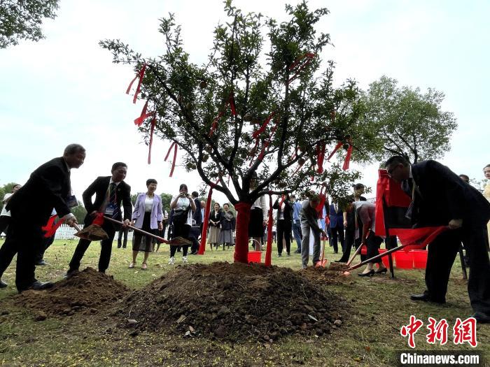 9月13日,第五屆海峽兩岸姊妹湖產(chǎn)業(yè)協(xié)作年會在武漢啟幕,8個湖泊代表共植“姊妹樹”?!≈行律缬浾?馬芙蓉 攝