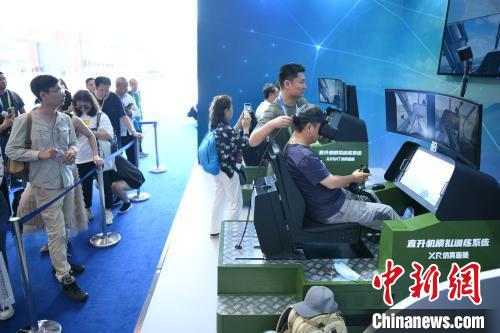 9月14日,與會者在展位體驗直升機(jī)模擬訓(xùn)練系統(tǒng)。當(dāng)日,第六屆中國天津國際直升機(jī)博覽會在天津市空港經(jīng)濟(jì)區(qū)開幕。為期四天的博覽會吸引了來自全球20多個國家和地區(qū)的350余家直升機(jī)企業(yè)齊聚津門。 佟郁 攝