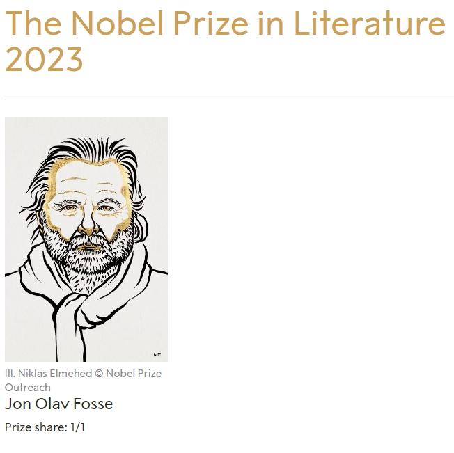 中新網(wǎng)10月5日電(張奧林)據(jù)諾貝爾獎官網(wǎng)消息,北京時間5日19時許,2023年諾貝爾文學(xué)獎揭曉,挪威作家約恩·福瑟(Jon Fosse)被授予該獎項。