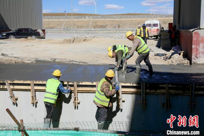 圖為西藏那曲物流園區(qū)綜合5站臺(tái)大修施工現(xiàn)場(chǎng)進(jìn)行混凝土澆筑作業(yè)。馬生明 攝