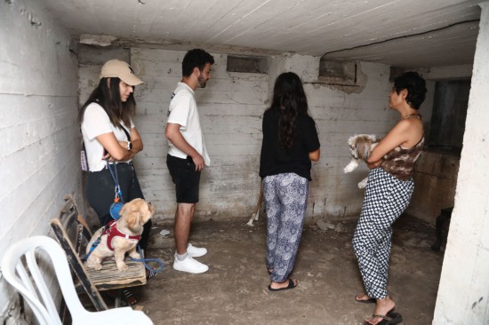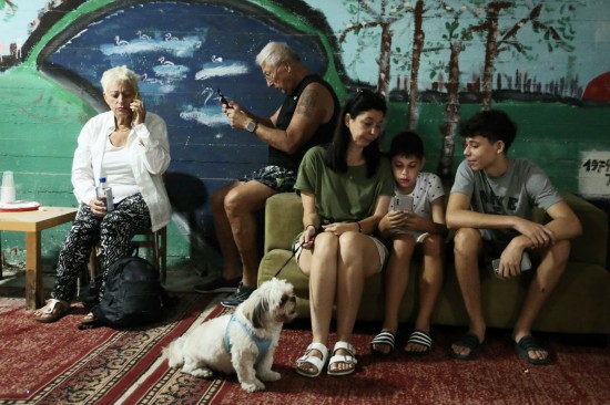 ↑10月7日,防空警報(bào)響起后民眾在以色列特拉維夫一處建筑內(nèi)躲避。新華社發(fā)(吉德翁·馬科維奇攝/基尼圖片社)