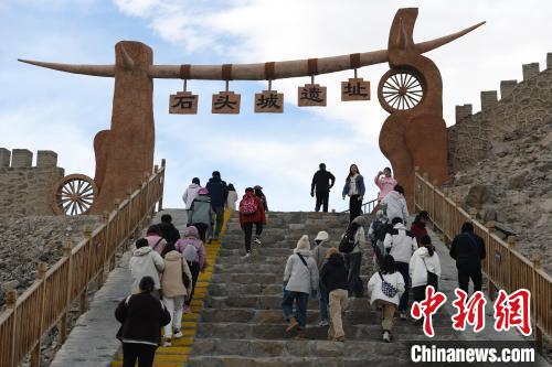 圖為10月2日拍攝的位于帕米爾高原上的塔什庫(kù)爾干縣石頭城遺址參觀的游客?!≈行戮W(wǎng)記者 孫亭文 攝