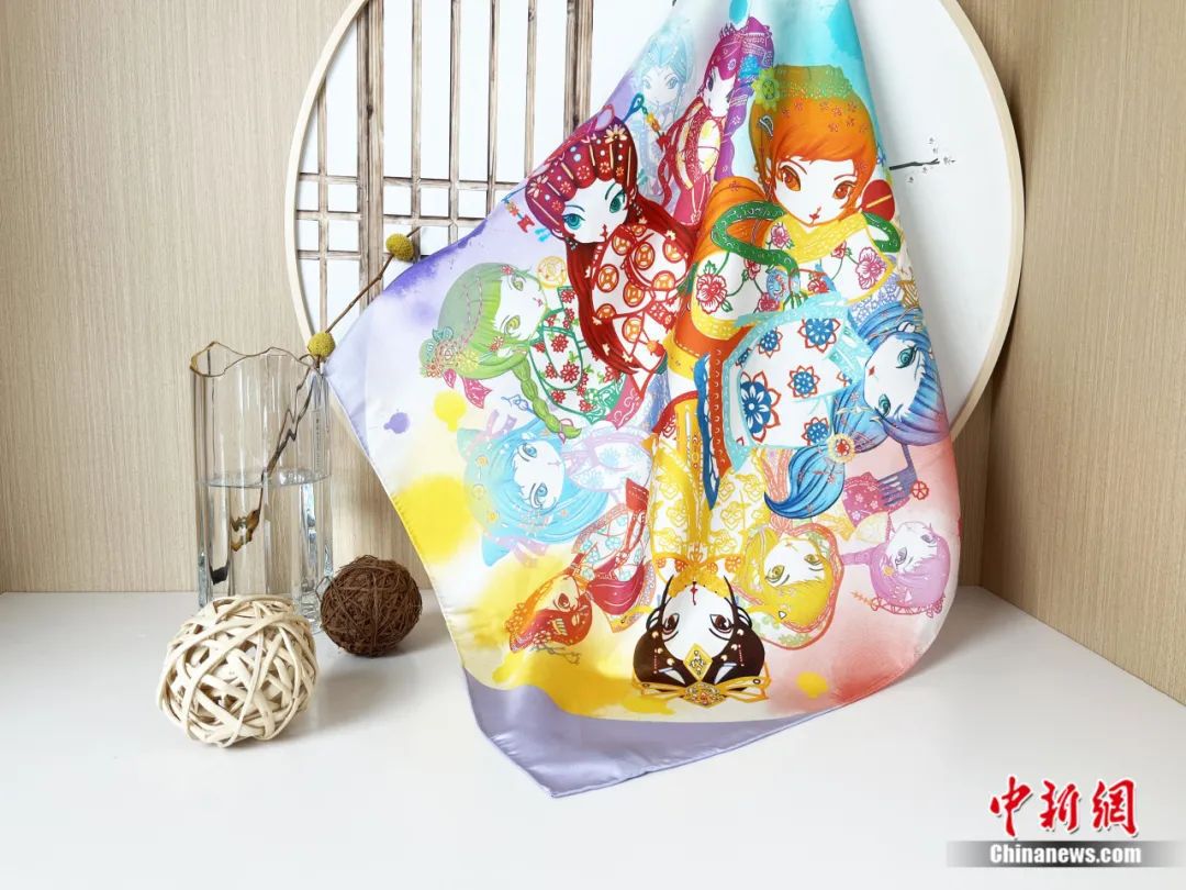 非遺剪紙金陵十二釵動(dòng)漫絲巾。湖州市委宣傳部供圖