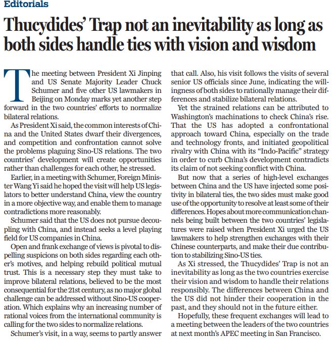 原文標題:Thucydides’ Trap not an inevitability as long as both sides handle ties with vision and wisdom