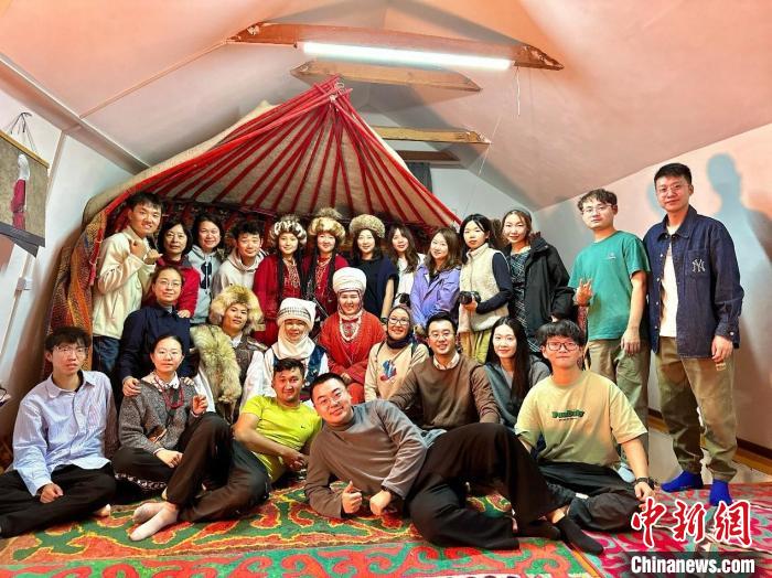 北師大未來設(shè)計學(xué)院師生在吉爾吉斯斯坦民族服飾設(shè)計工作室體驗當(dāng)?shù)貍鹘y(tǒng)服飾。北師大未來設(shè)計學(xué)院供圖