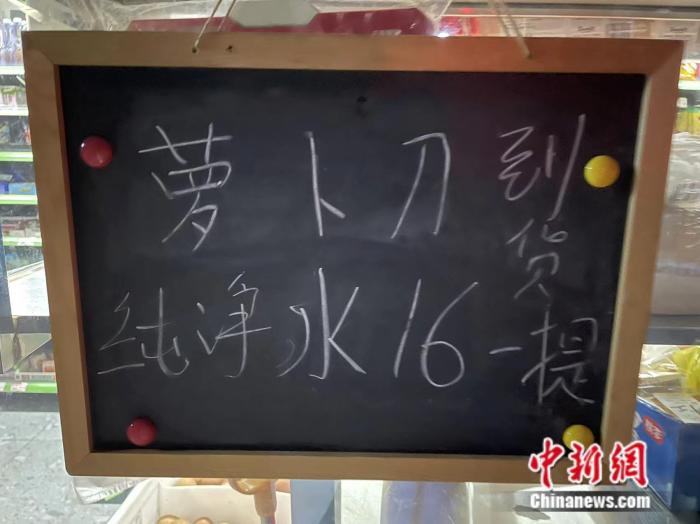 北京一所小學門口的小賣部黑板上寫著“蘿卜刀到貨” 韋香惠 攝