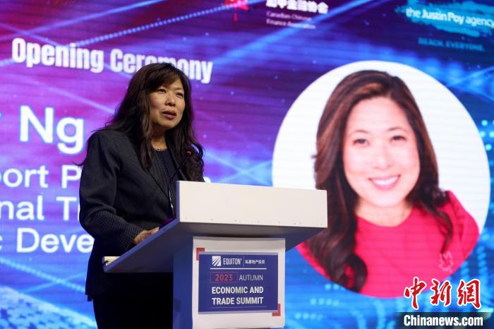 當?shù)貢r間10月11日,加拿大多倫多,加拿大出口促進、國際貿(mào)易和經(jīng)濟發(fā)展部長伍鳳儀在多倫多出席當日開幕的2023秋季經(jīng)貿(mào)論壇時表示,加政府正繼續(xù)在全球各地商談、拓展貿(mào)易協(xié)議。記者 余瑞冬 攝