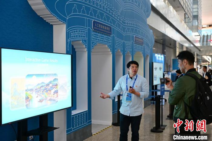 10月15日,北京,工作人員為媒體記者介紹人工智能繪畫體驗項目。當(dāng)日,位于國家會議中心的第三屆“一帶一路”國際合作高峰論壇新聞中心啟動試運行。 中新社記者 田雨昊 攝