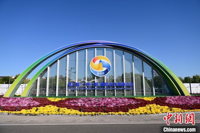 10月15日,北京,國(guó)家會(huì)議中心外的第三屆“一帶一路”國(guó)際合作高峰論壇景觀布置。當(dāng)日,位于國(guó)家會(huì)議中心的第三屆“一帶一路”國(guó)際合作高峰論壇新聞中心啟動(dòng)試運(yùn)行?!≈行律缬浾?田雨昊 攝