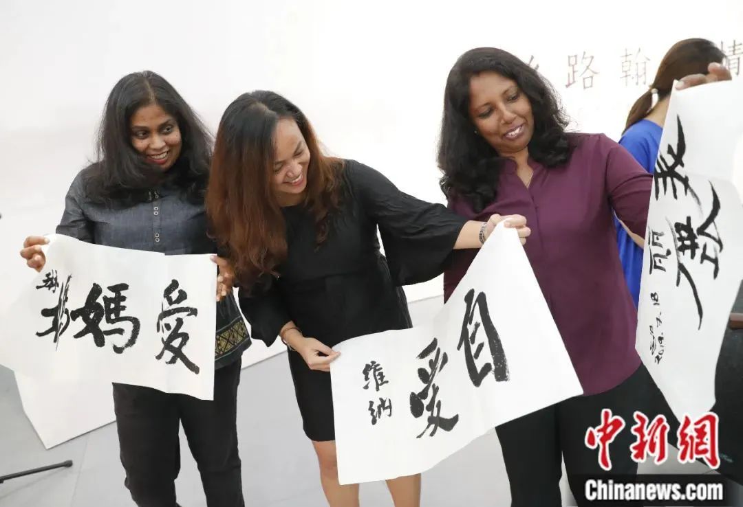 2019年7月17日,“絲路翰墨情——外國友人在中國美術館體驗書法魅力”活動在北京中國美術館舉行。中新社記者 杜洋 攝