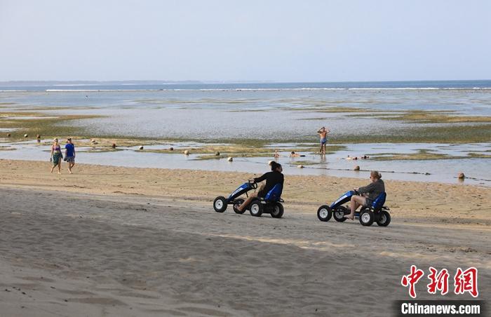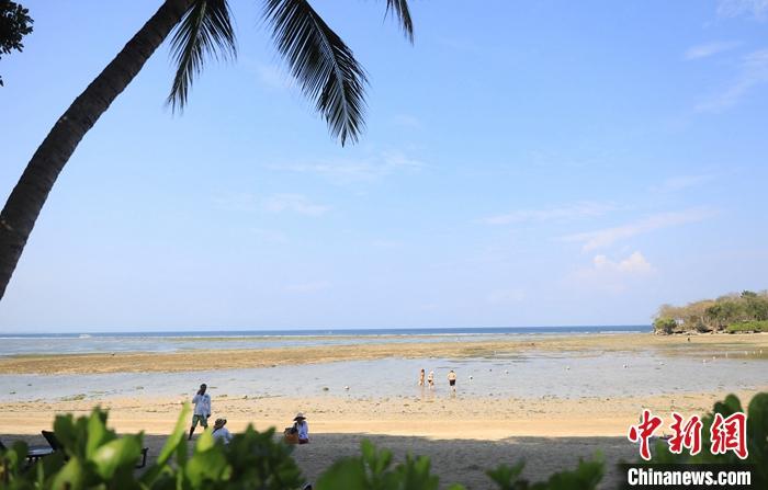 圖為10月13日,巴厘島努沙杜瓦海灘的游客。 中新社記者 李志全 攝