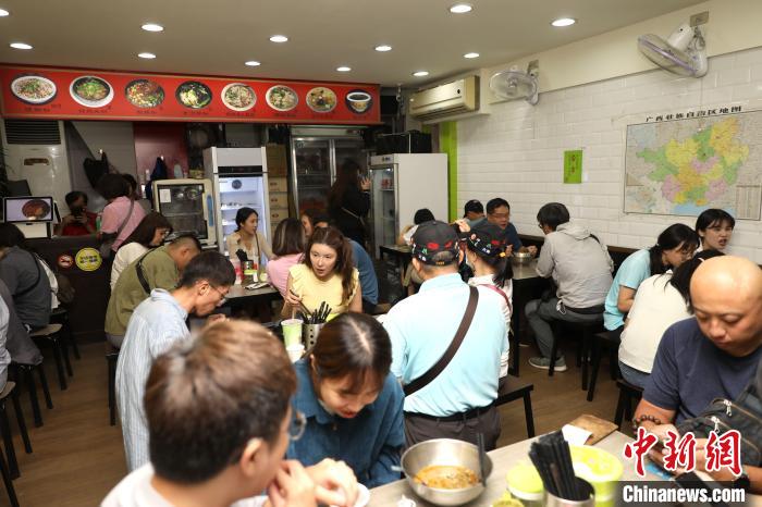 11月5日,臺北萬華區(qū)的柳州螺螄粉店內(nèi),顧客正在用餐?!≈行律缬浾?陳小愿 攝