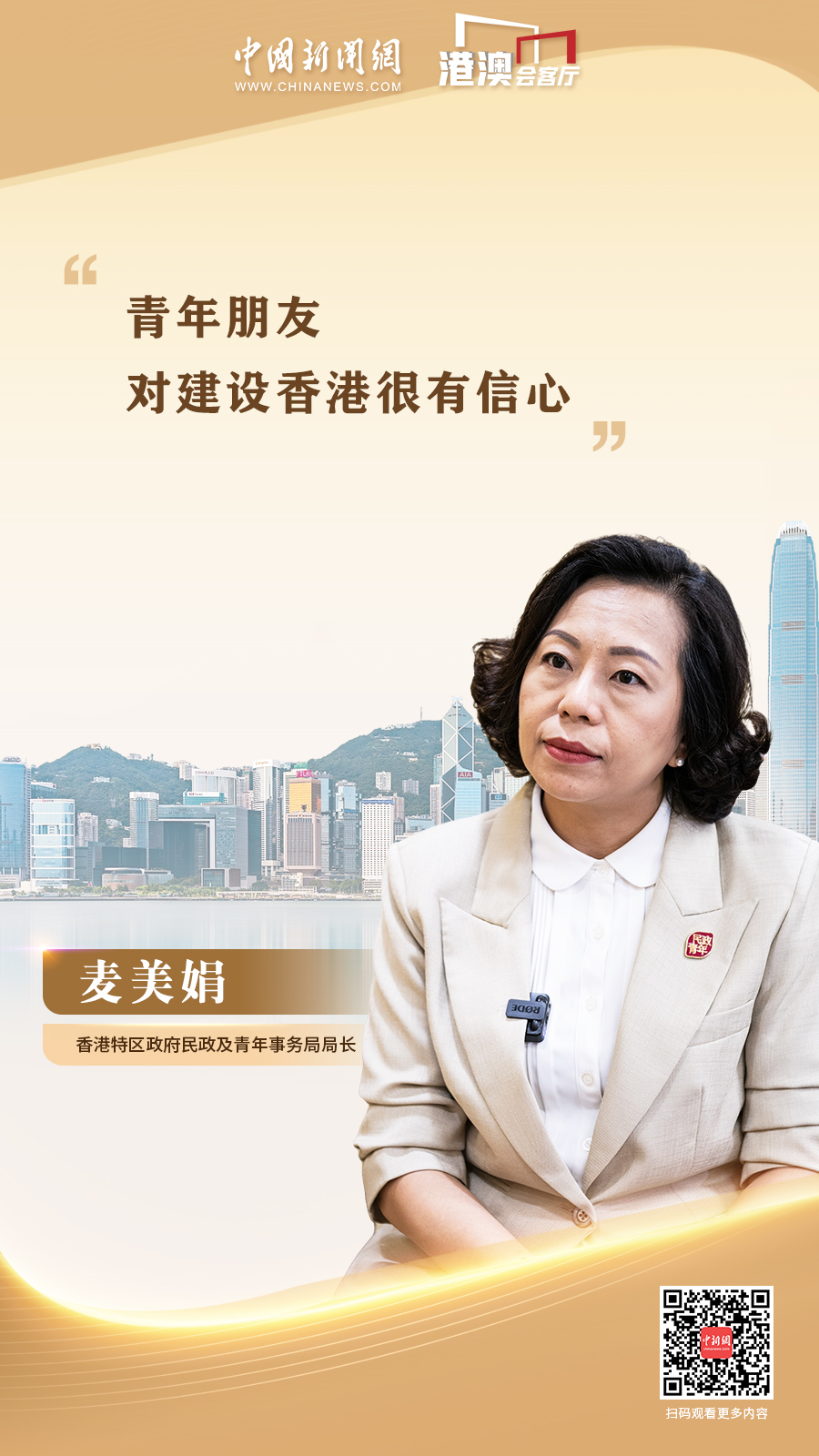 香港特區(qū)政府民政及青年事務(wù)局局長(zhǎng)麥美娟近日接受中國(guó)新聞網(wǎng)“港澳會(huì)客廳”欄目專(zhuān)訪時(shí)表示,青年朋友對(duì)建設(shè)香港很有信心。