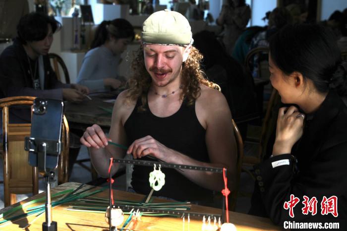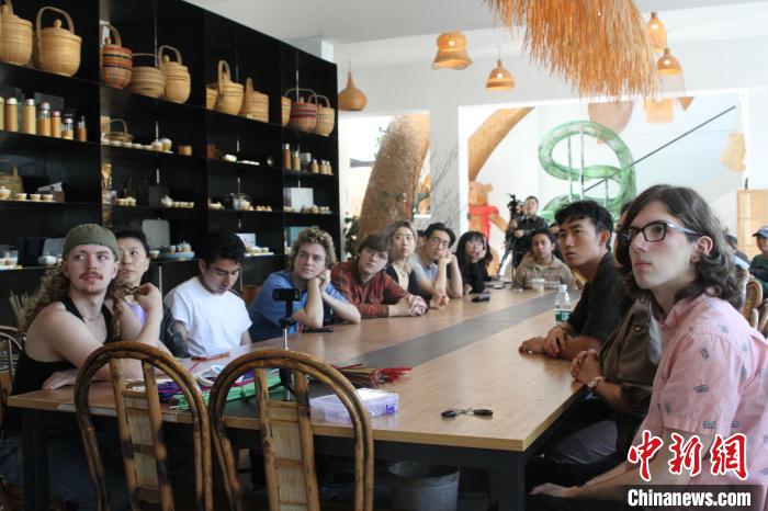 美國(guó)大學(xué)生四川崇州拜師學(xué)藝 感受縱橫指尖竹編魅力