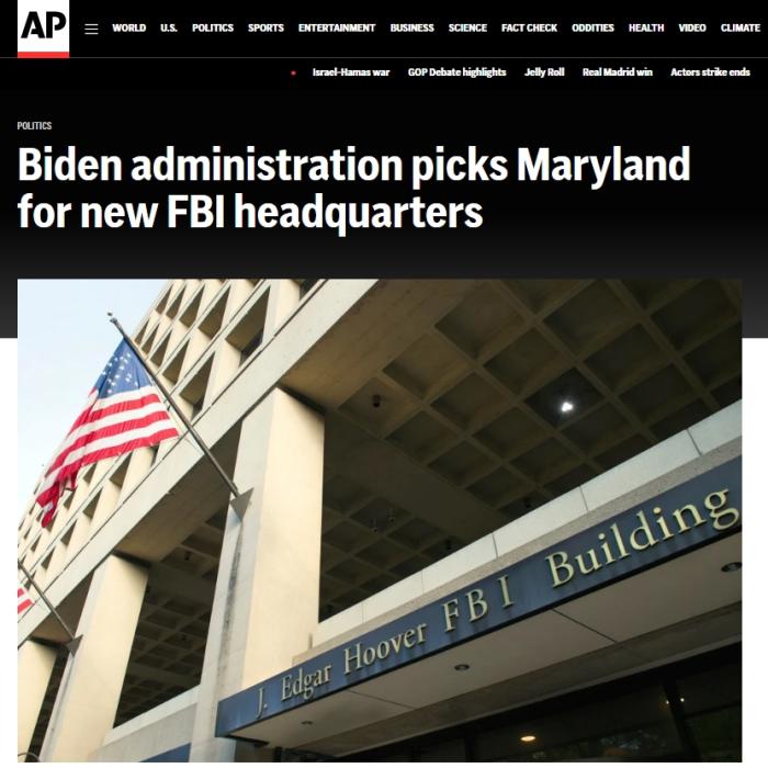 中新網(wǎng)11月9日電 綜合美聯(lián)社、《華盛頓郵報(bào)》報(bào)道,當(dāng)?shù)貢r(shí)間8日,美國聯(lián)邦總務(wù)管理局(GSA)證實(shí),美國政府已選擇在馬里蘭州設(shè)立聯(lián)邦調(diào)查局(FBI)新總部。