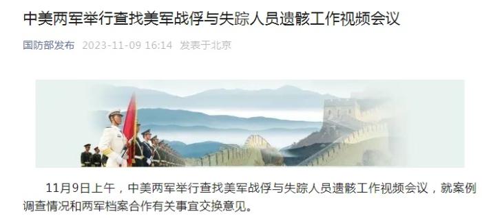 中新網(wǎng)11月9日電 據(jù)國防部發(fā)布微信公眾號消息,11月9日上午,中美兩軍舉行查找美軍戰(zhàn)俘與失蹤人員遺骸工作視頻會議,就案例調(diào)查情況和兩軍檔案合作有關(guān)事宜交換意見。