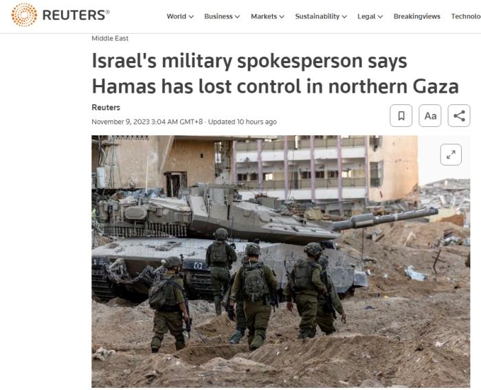 中新網(wǎng)11月9日電 據(jù)路透社報(bào)道,當(dāng)?shù)貢r(shí)間8日,以色列軍方發(fā)言人丹尼爾·哈加里(Daniel Hagari)表示,隨著數(shù)千居民向南遷移,巴勒斯坦伊斯蘭抵抗運(yùn)動(dòng)(哈馬斯)已經(jīng)失去了對(duì)加沙地帶北部的控制。