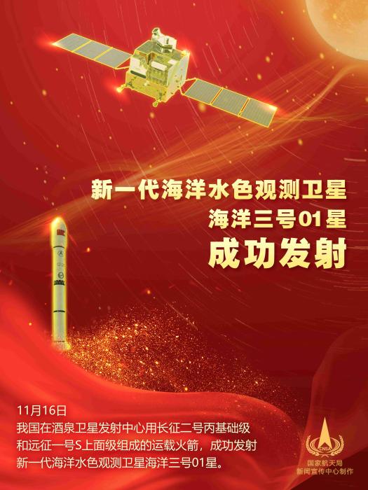 中新網(wǎng)酒泉11月16日電 (馬帥莎 張未)11月16日11時(shí)55分,中國(guó)在酒泉衛(wèi)星發(fā)射中心用長(zhǎng)征二號(hào)丙基礎(chǔ)級(jí)和遠(yuǎn)征一號(hào)S上面級(jí)組成的運(yùn)載火箭,成功發(fā)射新一代海洋水色觀測(cè)衛(wèi)星海洋三號(hào)01星。該衛(wèi)星指標(biāo)達(dá)到國(guó)際水色遙感衛(wèi)星先進(jìn)水平,可滿足中國(guó)海洋環(huán)境監(jiān)測(cè)的主體業(yè)務(wù)需求,并能夠服務(wù)于生態(tài)文明建設(shè)、智慧海洋工程建設(shè)、“一帶一路”倡議等國(guó)家重大戰(zhàn)略需求。