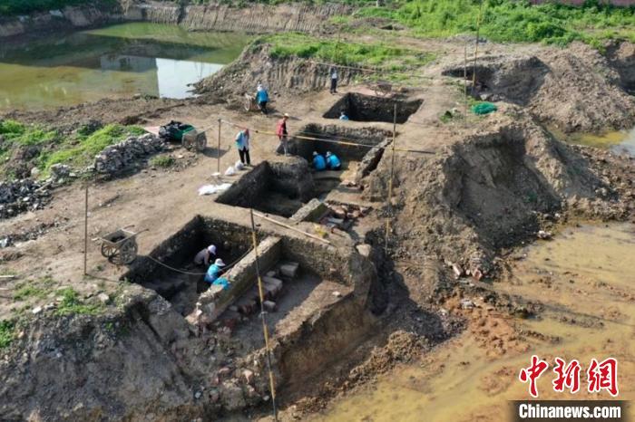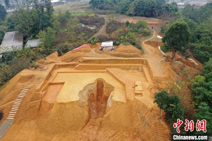 航拍壇罐山遺址考古發(fā)掘現(xiàn)場。眉山市文物局供圖