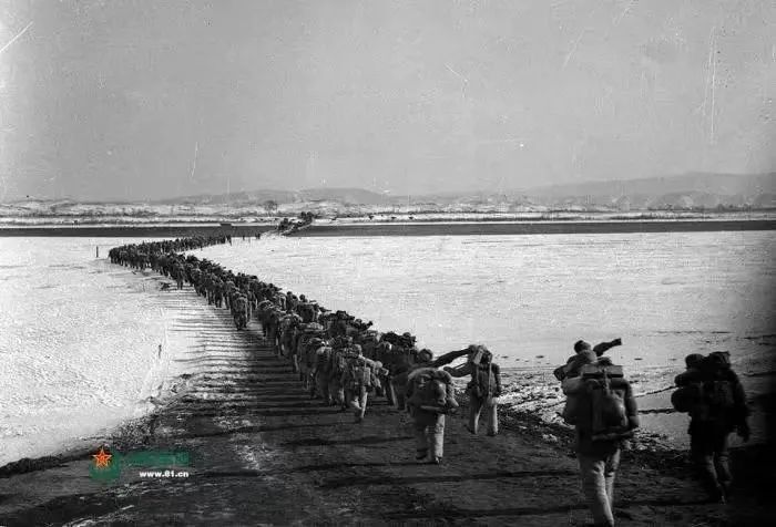 1950年冬,中國(guó)人民志愿軍跨過(guò)鴨綠江。圖片來(lái)源:中國(guó)軍網(wǎng)