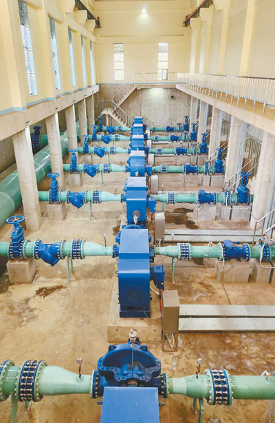 坦桑尼亞阿魯沙新供水系統(tǒng)項目由中國電建市政建設集團有限公司承建。項目設計日供水量為12.5萬立方米/天,可滿足阿魯沙40萬人的用水需求。項目建成后將極大地改善阿魯沙市區(qū)的供水短缺問題,對推動當?shù)亟?jīng)濟發(fā)展、增進民生福祉具有重要作用。圖為阿魯沙新供水系統(tǒng)項目5號提升泵站內(nèi)景。