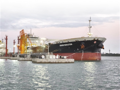 肯尼亞蒙巴薩港新建KOT油碼頭是一座具有國際領先水平的現(xiàn)代化油氣裝卸碼頭,由中國交通建設集團有限公司承建。該碼頭能夠同時實現(xiàn)原油、重油、汽油、柴油、煤油和液化石油氣的進出口轉(zhuǎn)運功能,投入使用后大幅提升了蒙巴薩港油氣中轉(zhuǎn)能力,為肯尼亞經(jīng)濟發(fā)展增添新動力。圖為??吭谠摯a頭的一艘油輪正在進行卸油作業(yè)。