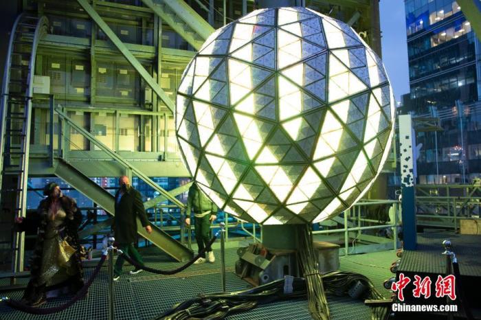 資料圖:當(dāng)?shù)貢r(shí)間2021年12月30日,美國紐約時(shí)報(bào)廣場跨年夜倒計(jì)時(shí)水晶球測試亮燈,現(xiàn)場向部分人士開放預(yù)覽。 中新社記者 廖攀 攝