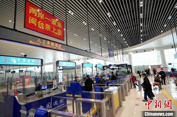 1月1日上午,廈門邊檢總站高崎邊檢站在廈門五通客運(yùn)碼頭為新年第一批“小三通”入境臺胞辦理邊檢手續(xù)。國家移民管理局供圖