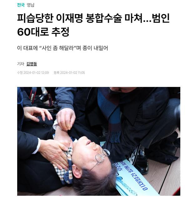 - 韓媒:警方推測(cè)李在明受輕傷“身上有1厘米的裂傷”