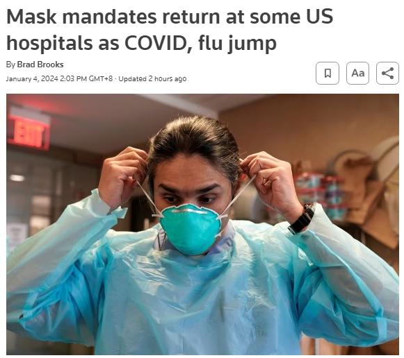 呼吸道疾病病例激增 美國(guó)至少四州醫(yī)院恢復(fù)戴口罩規(guī)定