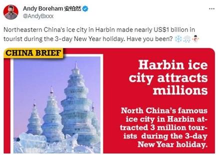 事實上,過去的元旦假期,這座位于中國東北的冰雪城市,不僅在國內持續(xù)走紅,外國網(wǎng)友也紛紛表示,想去哈爾濱這個神奇而美麗的地方!