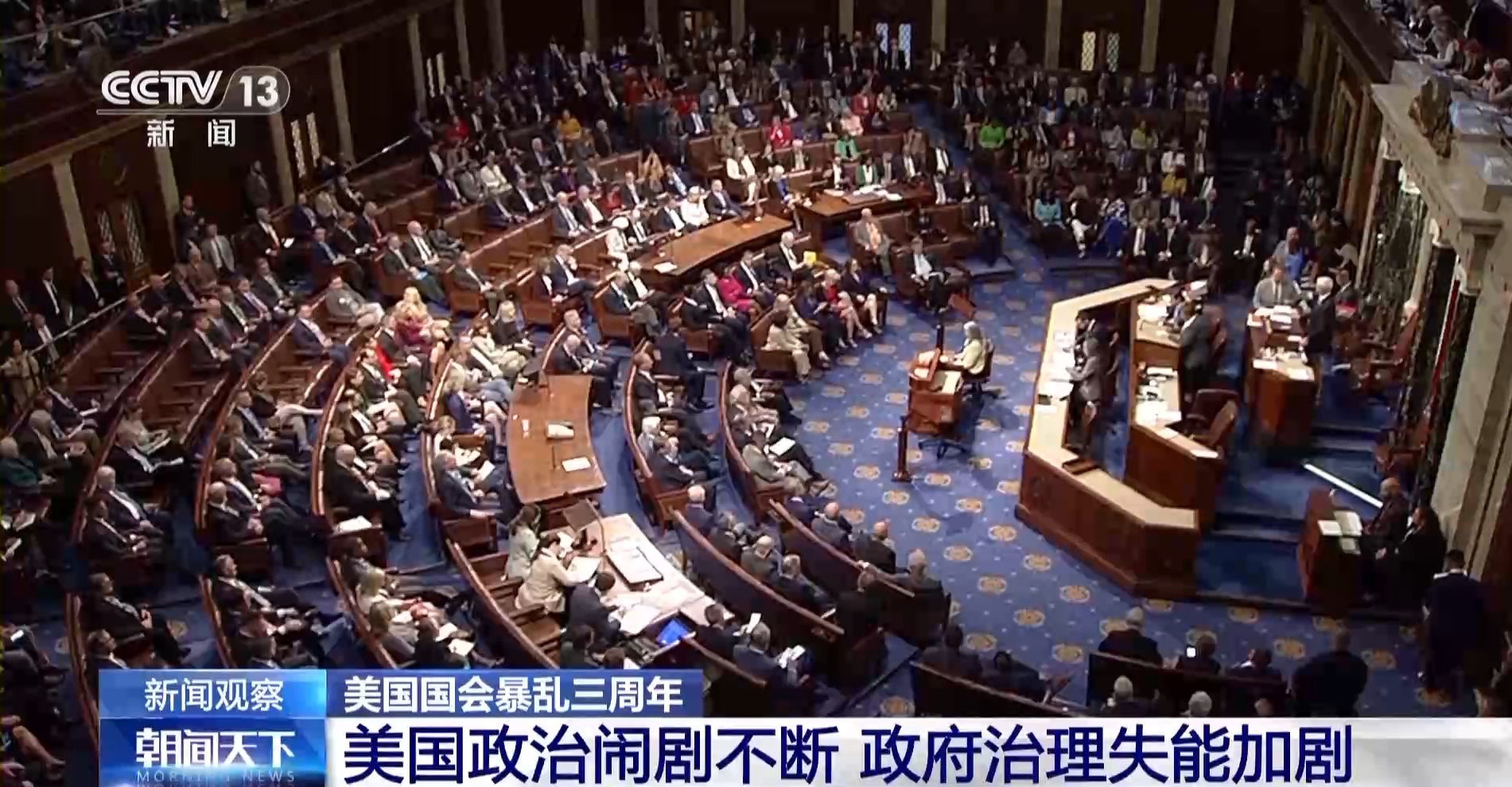 如今,美國國會暴亂事件已經過去三年,國會大廈這一“美國政治的象征”成了美國民主、共和兩黨相互攻訐、上演一出出政治鬧劇的舞臺。在美國政治極化、黨爭加劇的環(huán)境下,美國經濟社會議程遲滯,政府治理失能現象惡化,美國社會沉疴難愈。
