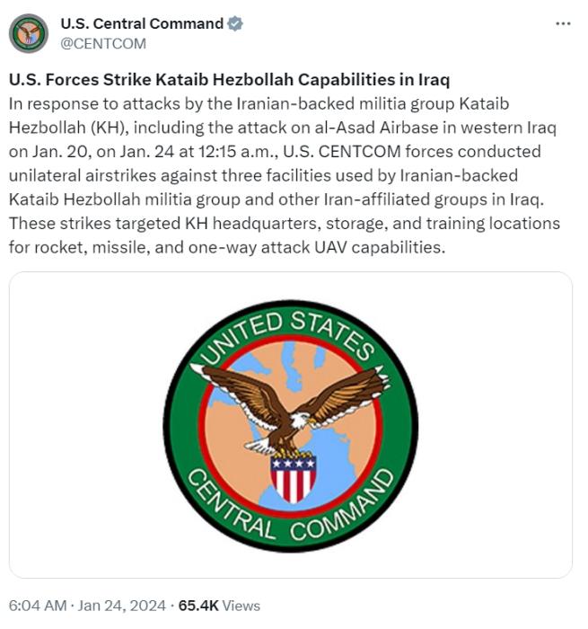 據(jù)報道,奧斯汀在聲明中表示,此次襲擊“是對伊朗支持的民兵武裝在伊拉克和敘利亞針對美國和聯(lián)軍人員的一系列襲擊的直接回應(yīng)”。他表示,襲擊目標(biāo)是民兵武裝“真主黨旅”和其他武裝組織在伊拉克使用的3處設(shè)施。