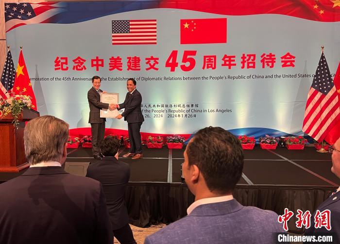 當(dāng)?shù)貢r(shí)間1月26日,中國(guó)駐洛杉磯總領(lǐng)事館舉辦紀(jì)念中美建交45周年招待會(huì)。 中新社記者 張朔 攝
